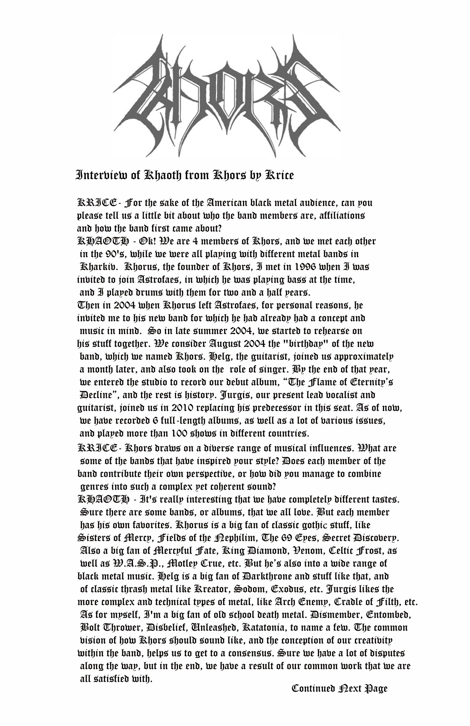 Khors, Legion, Stíny Plamenů, Verräter, Phantasmal, Conjuror, Solstafir. This Is An Updated Version Of The Zine That Came With The Legion Canada "Spring Offensive" 2015 Comp
